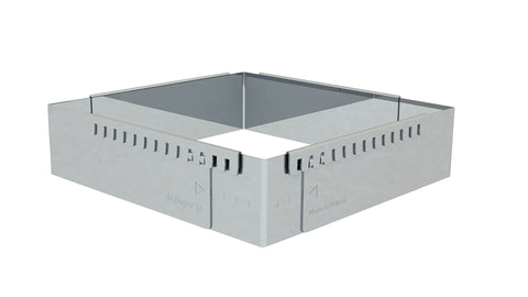 Expandable square or rectangular frame with sharp angles ideal for making mousse or cream based desserts, sponge cakes, Joconde biscuits..