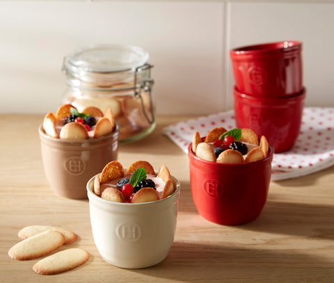 طقم عملي و متعدد الاستخدامات مكون من قالبين من السيراميك بألوان رائعة. مثالي لتحضير و تقديم السوفليه و الكريم بروليه، و المقبلات و العديد من الأطباق الحلوة و المالحة.