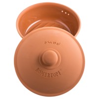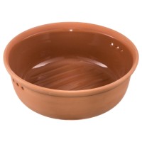 وعاء دائري من الفخار مخصص لحفظ الخبز طازجا لعدة أيام. تساعد الفتحات الجانبية على تدوير الهواء لضمان تهوية جيدة و منع تراكم الرطوبة و نمو الفطريات. قاعدة الوعاء مطلية من الداخل لسهولة التنظيف، بينما الغطاء غير مطلي لموازنة مستوى الرطوبة و الحفاظ على الخبز طرياً و طازجاً.